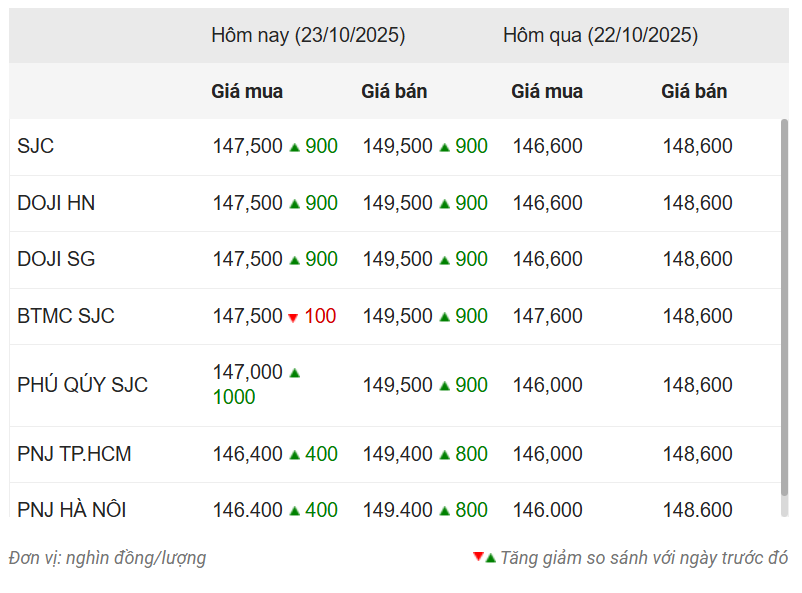 Giá vàng hôm nay (chiều 23-10): Vàng miếng tăng mạnh, vượt lại mốc 149,5 triệu đồng/lượng
