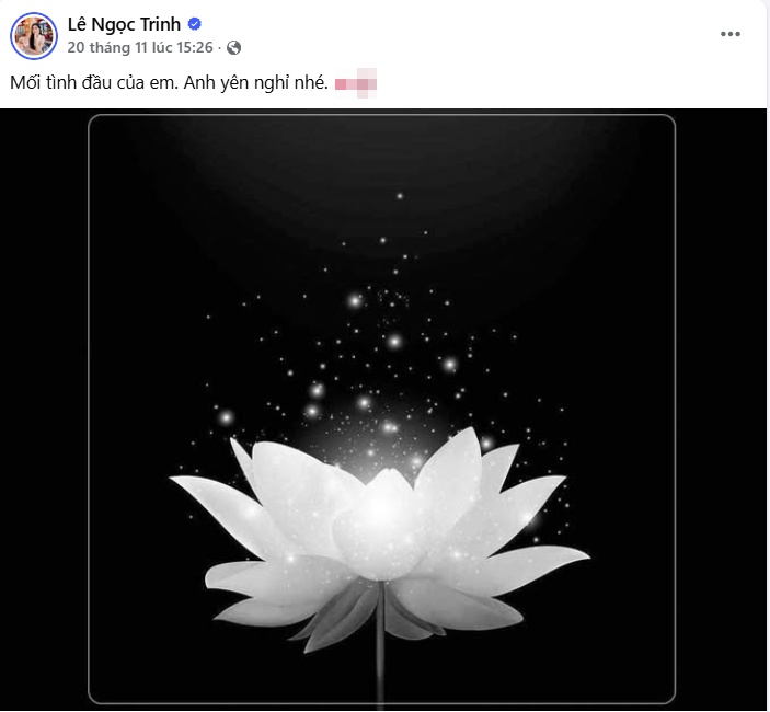 Chỉ vài ngày trước đó, Ngọc Trinh đã báo tin buồn về sự ra đi của mối tình cũ. Cô đăng hình ảnh một bông sen trắng – biểu tượng của sự tiễn biệt – kèm lời nhắn ngắn gọn nhưng thấm đẫm nỗi đau: “Mối tình đầu của em. Anh yên nghỉ nhé.” Bài viết ngay lập tức thu hút hàng nghìn bình luận bày tỏ sự thương cảm và chia sẻ với nữ diễn viên.