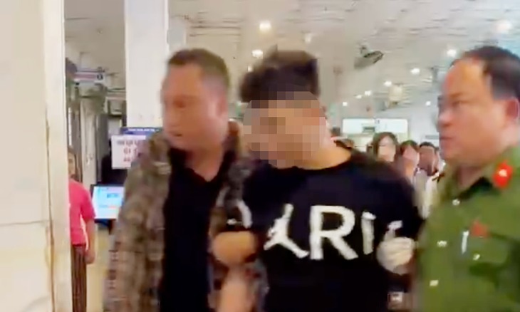 Bảo vệ Bệnh viện Sản Nhi Nghệ An cùng lực lượng công an đã khống chế, bắt nghi phạm.